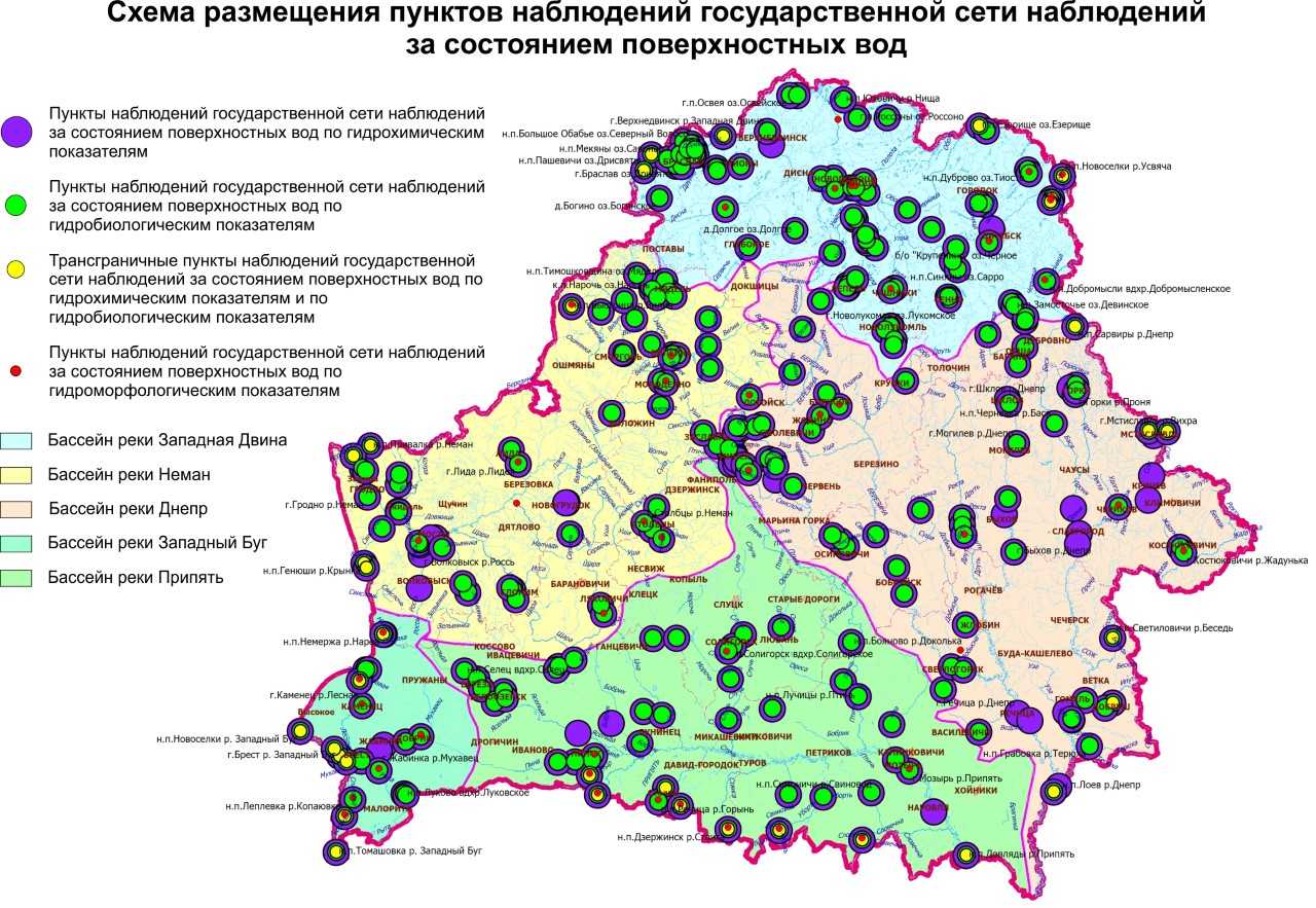 Государственная сеть наблюдений за состоянием поверхностных вод организовывается с учетом границ речных бассейнов и включает в себя, в том числе фоновые и трансграничные пункты наблюдений: